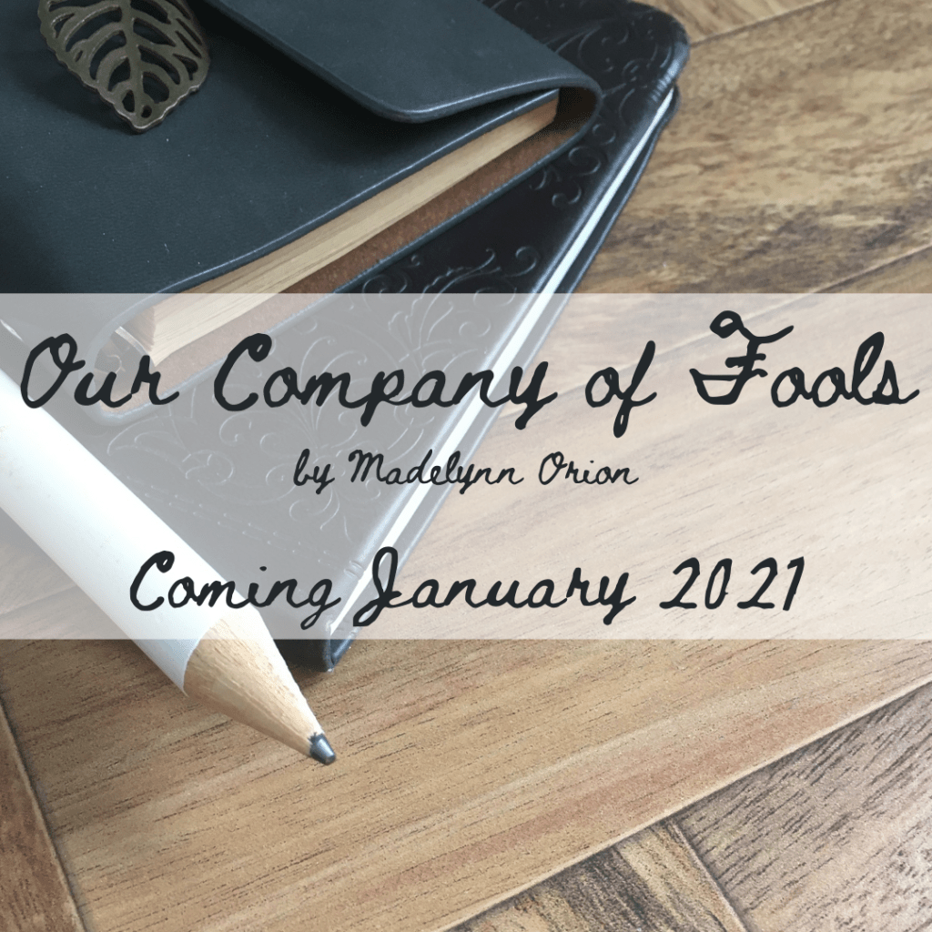 I’M PUBLISHING A BOOK! On October 16, 2020October 13, 2020 By Madelynn OrionIn Novels by Me, Our Company of Fools, OYAN, Publishing, The Writing Life, Updates Click here for more information on Our Company of Fools and my other works-in-progress. Share this: Share on X (Opens in new window) X Share on Facebook (Opens in new window) Facebook Like Loading... Related