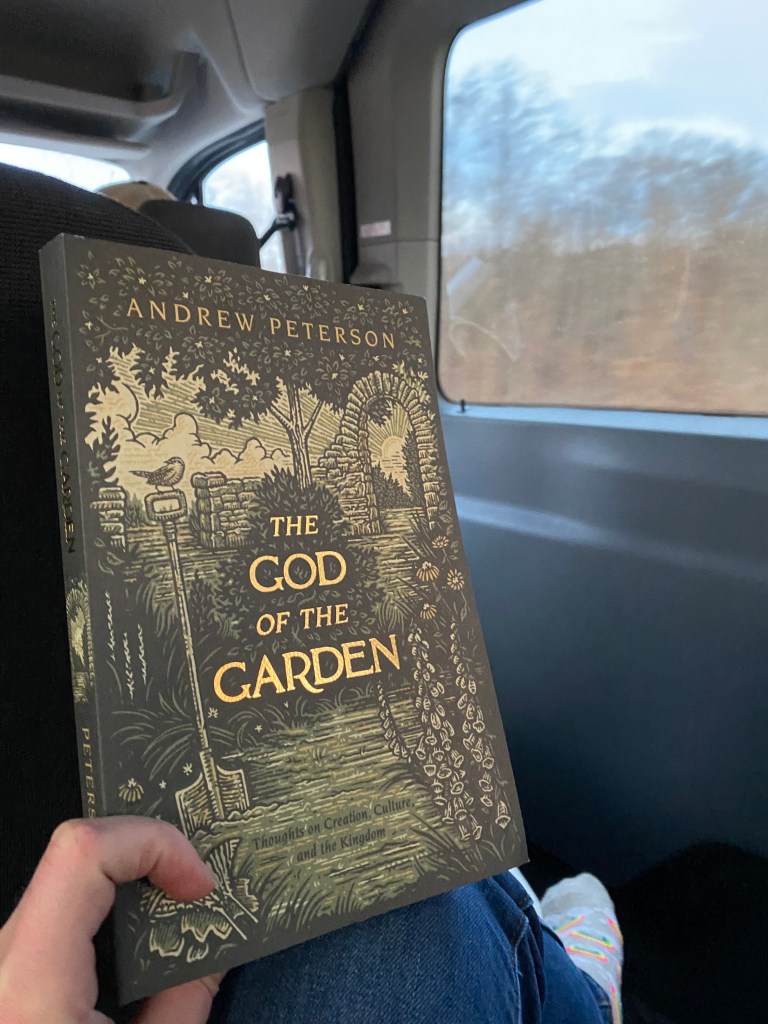 I wrote in my outline for this post that we had an uneventful drive there. But now that I’m writing this, I realize that wasn’t entirely true. Our early-morning trek started with us nearly driving west instead of east (saved only by the fact that two passengers were still awake to point out the error to our coffee-deprived driver). At lunch, I attempted to order a burger without a bun to a very puzzled fast food worker (gluten-free necessities, unfortunately) and received a patty the size of a silver dollar with a sprinkling of shredded lettuce on top, the comical portion-size making all of us laugh. In between escapades and jokes with my friends, I also read The God of the Garden, Andrew Peterson’s newest book, in one sitting during our Sunday drive, which was very fitting considering the purpose of our quest was to attend his concert. Plus, reading books in one go is something I aspire to have the time to do. And—wow. What a way to start my brief voyage away from home. The God of the Garden might be my all-time favorite nonfiction book. Andrew Peterson really is a master at writing creative nonfiction/memoir in a way that moves me to worship God and appreciate His gifts, and Andrew’s own struggles of loneliness, depression, and mourning the loss of innocence all resonate very strongly with me. Reading his nonfiction books is like talking to an older, wiser friend.