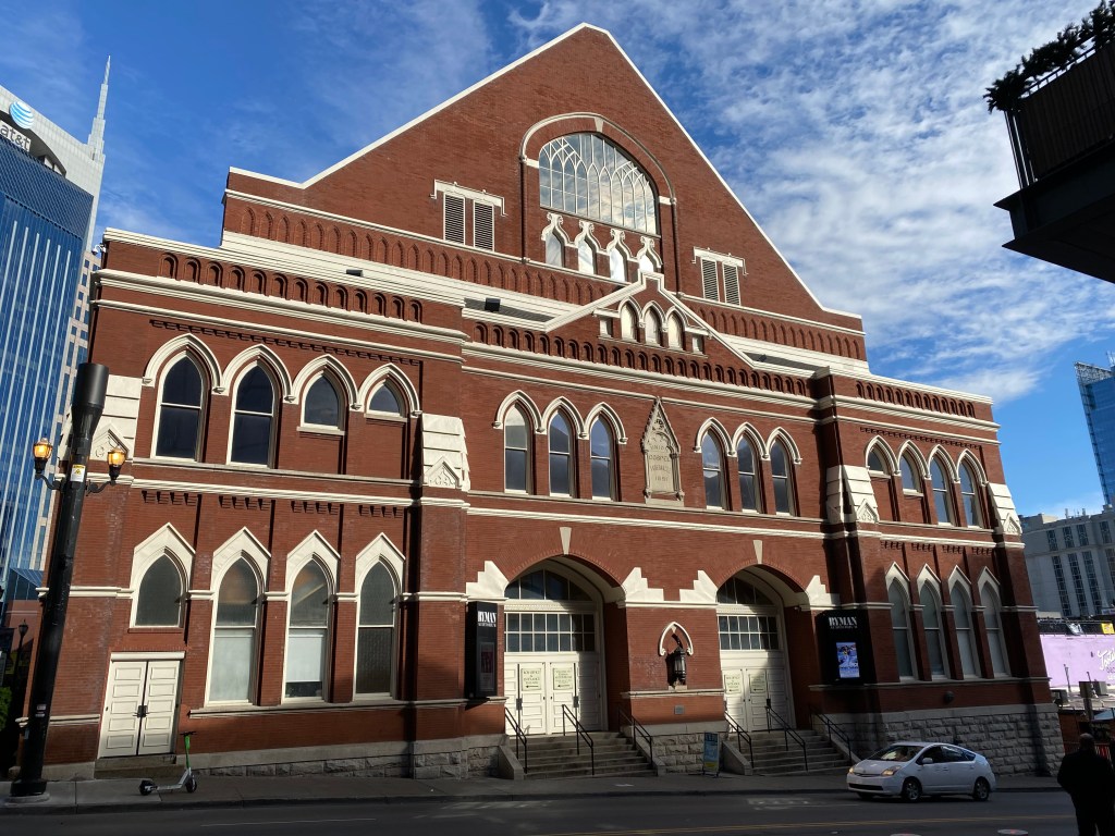 If you’ve followed me for a while, you’ll know that my appreciation of Andrew Peterson—a singer-songwriter and author—goes back many years. His music encouraged me through my gap year, I once described his book Adorning the Dark as a writing retreat in book form, and I’m a fan of his Wingfeather Saga, which I reread this summer. Speaking of Adorning the Dark, in that book, Andrew talks about his dream of performing at the Ryman Auditorium, one of Nashville’s historic theaters known as the “Mother Church of Country Music,” a dream which he eventually fulfilled. Since reading his story, I’ve wanted to see him perform live at the Ryman. So, when my friends decided to go to Nashville this December for his annual Christmas concert, I jumped on the bandwagon—or, rather, band-ten-passenger-van.