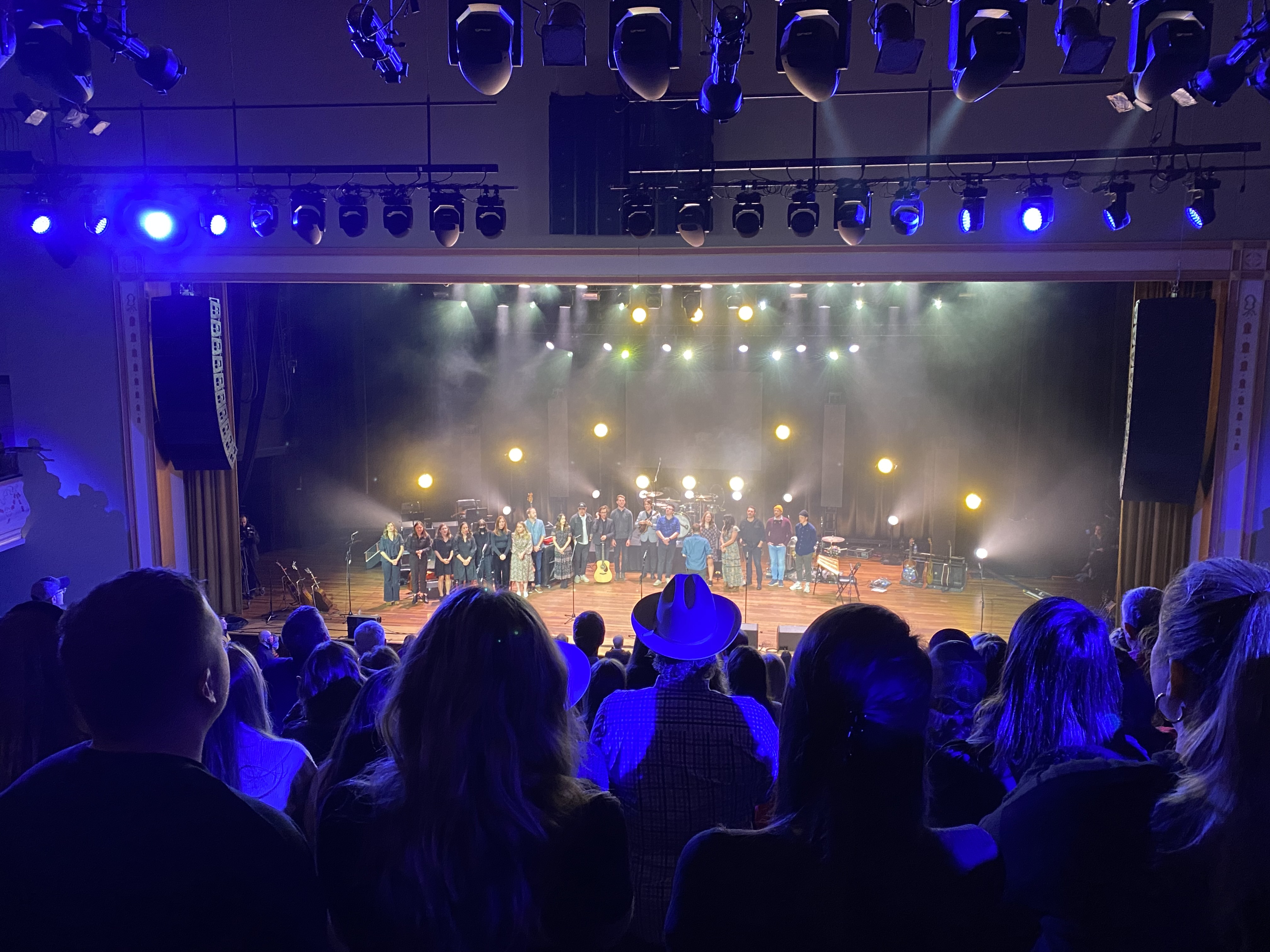 The concert, by the way, was Andrew Peterson’s annual Behold the Lamb of God, which he’s organized and performed for twenty-plus years. It’s truly a unique event, as Andrew invites other artists to join him (many of whom are staples of the show, and others who serve as special guests for the year’s tour). The first act is a performance in the round, as each artist takes the stage to perform a couple of their own songs. During the second act, Andrew and his fellow artists perform through his Behold the Lamb of God album, which tells the story of Scripture from the beginning through the birth of Christ. I first saw the show (and heard the album) back in 2011, ten years ago (a fact I realized halfway through this year’s concert at the Ryman), and saw it for a second time a couple years after. We livestreamed last year’s show, a feature introduced during COVID. I anticipated this year’s show in particular because the special guest artists are The Arcadian Wild, my current favorite band—and, spoiler alert, they did not disappoint.