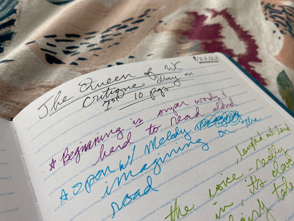 These ideas came jointly from my own reflections and ideas as I applied my editing notes and a Critique Day I participated in. I’m a member of the Society of Children’s Book Writers and Illustrators, or SCBWI, (which encompasses all children’s literature from picture book through young adult), and my region held a Critique Day in January. I workshopped the first 10 pages of The Queen of Whitman Court, and the experience was beneficial in both boosting my confidence in the story itself as well as giving me practical things to work on. Critique Day affirmed I have at least another draft to revise before I’m ready to query, though I do have a soft deadline for those revisions: April, when the SCBWI Oklahoma Regional conference happens.